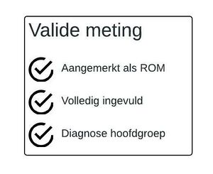 | Proces valide metingen | Valide ROM metingen per maand | De rapportage toont het aantal valide metingen. De rapportagedatum is gelijk aan de datum waarop de meting is afgenomen of anders de uiterlijke datum waarop de meting verwacht wordt. |