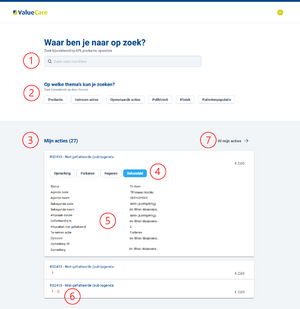 Op de landingspagina wordt een behapbaar aantal acties getoond. Via knop 7 kan de ingelogde gebruiker navigeren naar "Al mijn acties".